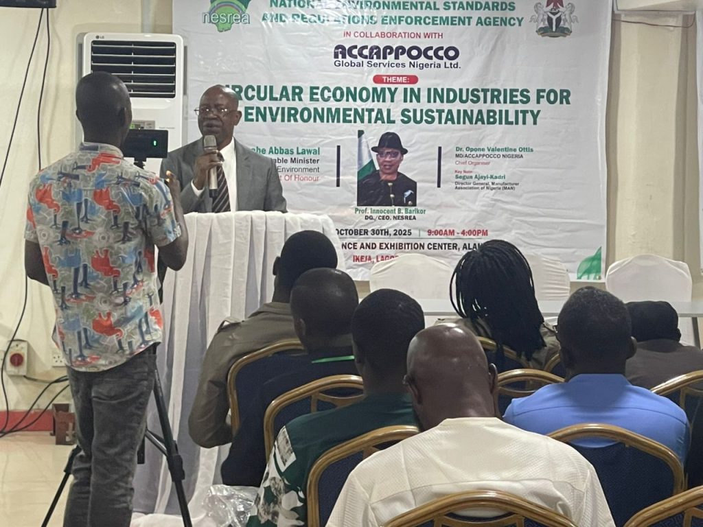 The National Environmental Standards and Regulations Enforcement Agency (NESREA) partnered with ACCAPPOCCO Global Services Nigeria Limited to host a training session on Circular Economy in Industries for Environmental Sustainability, attended by industry representatives, on Thursday.